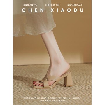 法式涼鞋外穿夏季新款拖鞋媽媽中跟仙女風溫柔旗袍粗跟高跟涼拖鞋