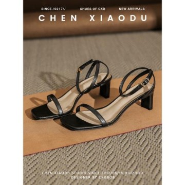御姐性感高跟鞋夏季細跟2025新款水鉆b扣一字帶包頭涼鞋尖頭單鞋
