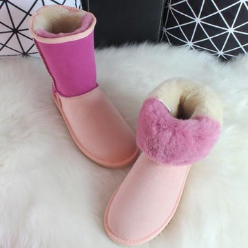 2024冬季新款正品真皮粉色雪地靴女皮毛一體中筒靴子防滑雪地棉鞋