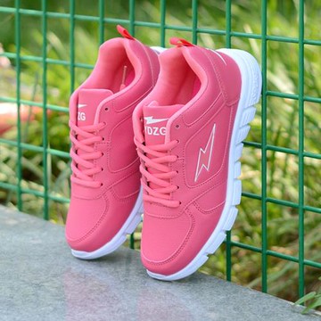 春季女鞋皮面防水運動鞋輕便軟底休閑跑步鞋學生小白鞋系帶單鞋潮
