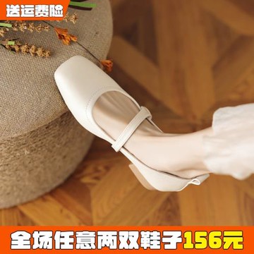 真皮單鞋女粗跟法式瑪麗珍中跟3cm溫柔方頭復古奶奶鞋大碼41一43