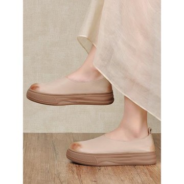 法式復古芭蕾舞鞋 一腳蹬平底單鞋 細膩絨面奶奶鞋