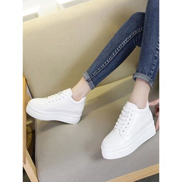 2025鉑思春夏新款松糕底圓頭休閑鞋增高女鞋百搭系帶小白板鞋女