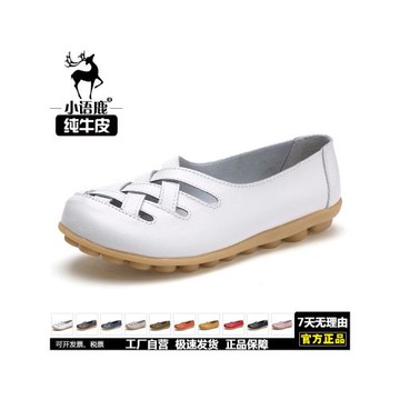夏季媽媽鞋軟底女舒適平底真皮豆豆鞋女鏤空涼鞋防滑奶奶鞋大碼鞋