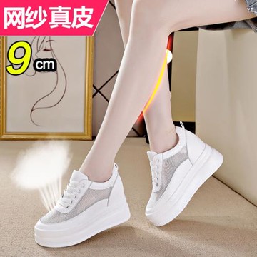 內增高休閑女鞋超高跟厚底松糕2026新款透氣網面小個子真皮小白鞋