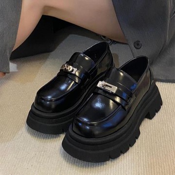英倫風小皮鞋女2024春季新款真皮厚底百搭鎖扣休閑樂福鞋jk單鞋女
