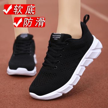 女鞋運動鞋女跑步鞋春秋全黑色媽媽網面透氣休閑軟底鞋工作旅游鞋