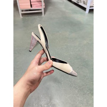 SL露娜春夏拼接尖頭時尚粗跟女鞋側空后伴帶涼鞋女SLP118032