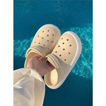 簡約百搭少女心可愛創意包頭洞洞鞋女士夏季踩屎感軟底海邊沙灘鞋