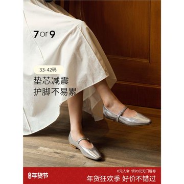 麥子同款7or9薄荷糖平底瑪麗珍鞋女法式小皮鞋銀色單鞋真皮小床墊