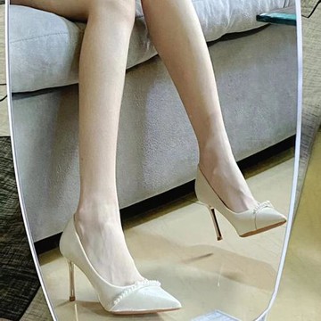 角狀拼接-歐美風尖頭細高跟-杏色