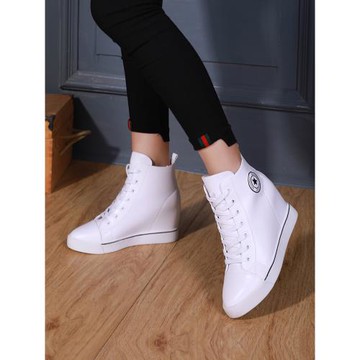 2025春季新款隱形內增高女鞋真皮高幫鞋女軟底百搭休閑鞋厚底短靴