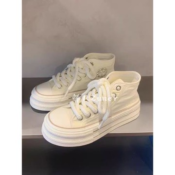 奶油厚底高幫帆布鞋女薄款2024新款小眾設計大頭松糕學生小白鞋