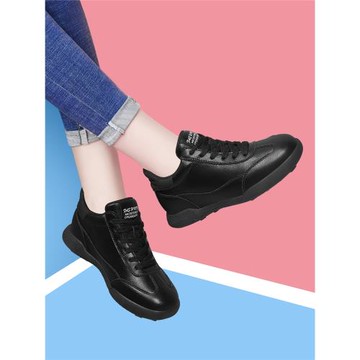 黑色運動鞋女款2024新款秋季女鞋真皮防滑軟底媽媽鞋春秋款休閑鞋