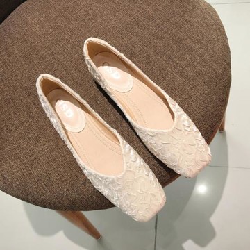 方頭淺口單鞋女2025春季新款韓版簡約舒適平底瓢鞋大碼軟底豆豆鞋