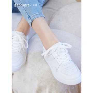 [清倉]BESSIEIE/貝緦通勤女士舒適簡拼接款圓頭板鞋休閑小白鞋