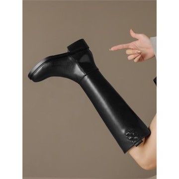 2025秋冬真皮防水臺超高跟長靴女厚底高跟騎士靴通勤粗跟高筒靴