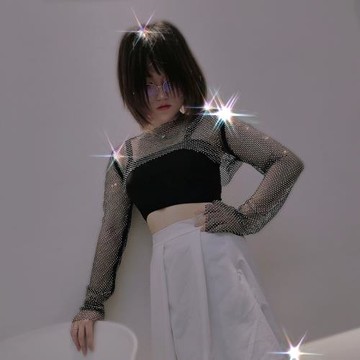 時尚雅妮網鉆水晶長袖亮閃閃網紅抖音短款亮鉆網衫滿鉆外搭上衣