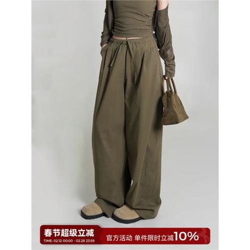 KKSTUDIO天絲亞麻抽繩闊腿遛彎褲女夏季韓系輕薄寬松拖地休閑長褲