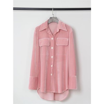 復古港味寬松大版翻領中長款金絲絨襯衫女 春秋新款洋氣大碼襯衣