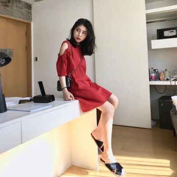 智熏洋氣超仙女心機裙子復古慵懶風極簡主義性感露肩連衣裙子2025