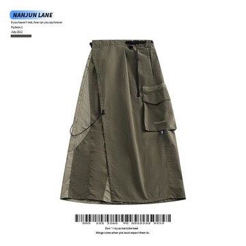 NANJUN 山系戶外機能風開叉中長款工裝半身裙女小眾拼接休閑A字裙