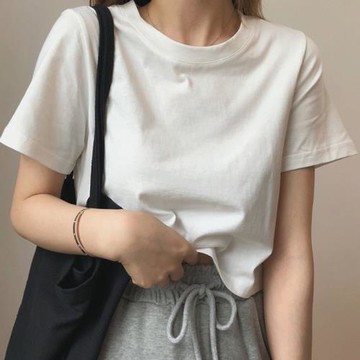 白色T恤女體恤短袖韓版顯瘦上衣修身內搭打底衫夏季棉質疊穿t圓領