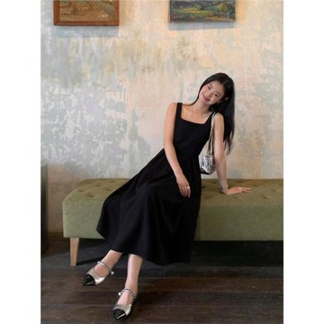 pusumede 法式方領吊帶連衣裙女收腰顯瘦高級感背心裙肌理感裙子