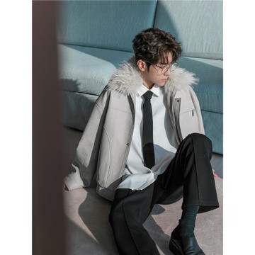 CHICERRO西西里男裝韓系加厚高級感潮牌設計感可拆卸毛領皮衣夾克