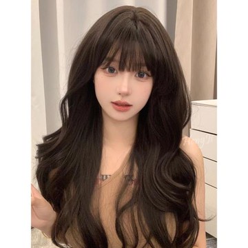 哼唧假發女長發大波浪長卷發lolita逼真空氣劉海假發全頭套式假發