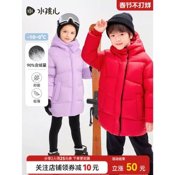 水孩兒童裝兒童羽絨服抑菌中長款冬裝男童大童女童輕薄鴨絨暖外套