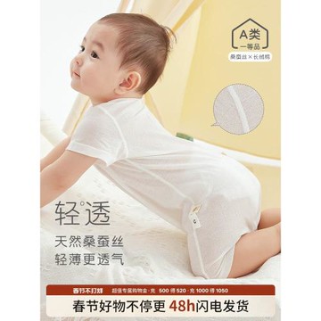 桑蠶絲寶寶衣服夏季嬰兒真絲睡衣夏裝短袖新生兒連體衣透氣空調服