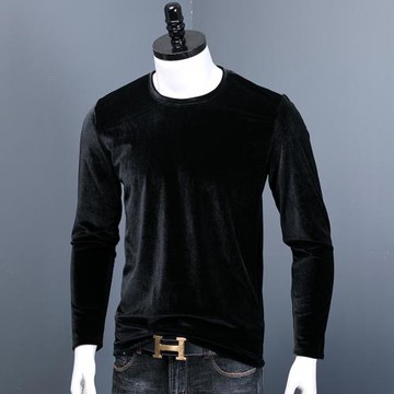 金絲絨打底衫男長袖 內搭潮春秋季低領內襯上衣修身純色圓領t恤男