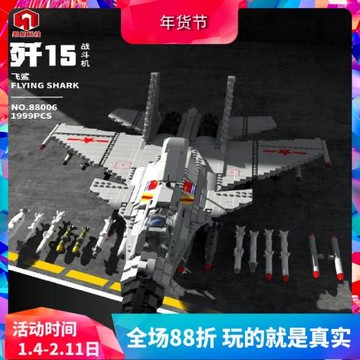 軍事航母艦載機飛鯊戰斗機飛機殲-15拼裝積木玩具88006