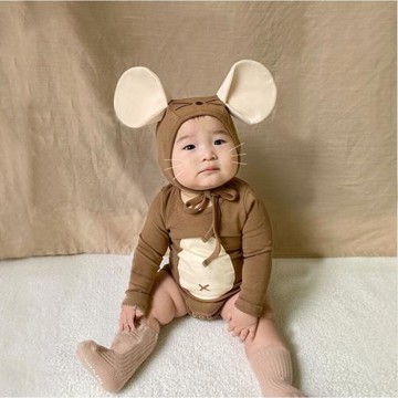 嬰兒秋裝網紅男女寶寶秋季套裝超萌可愛連體哈服滿月百天拍照卡通
