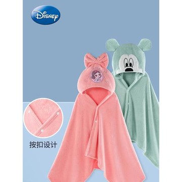 迪士尼愛莎公主兒童帶帽斗篷寶寶連帽浴巾吸水速干女孩不掉毛浴袍