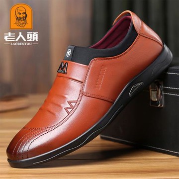 老人頭皮鞋男秋季新款男士商務休閑皮鞋真皮圓頭透氣軟底中年男鞋