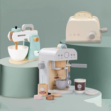 兒童過家家廚具男女孩廚房小家電玩具仿真木質面包機咖啡機