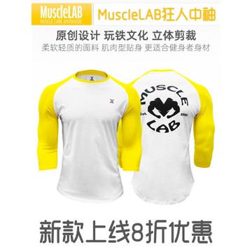 MuscleLAB狂人T恤中袖七分袖體恤棒球服運動健身體恤短袖純新疆棉