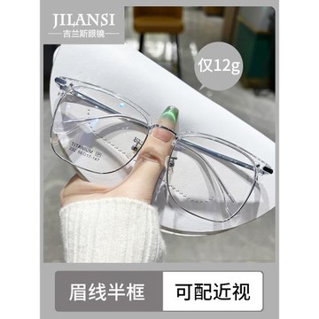 吉蘭斯純鈦超輕半框近視眼鏡框鏡架大臉男款可配度數防藍光眼睛框