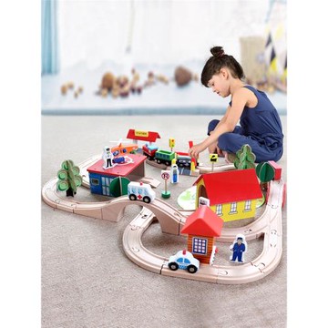 兒童列車蒸汽小火車軌道木制木質城市積木男孩益智百變玩具套裝