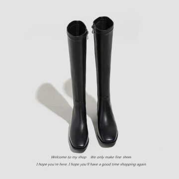 大碼女靴41-43長筒靴女粗腿V口高筒靴大筒圍不過膝長靴粗跟騎士靴