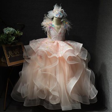 女童高定禮服粉色公主裙蓬蓬裙生日宴會主持走秀禮服十歲生日鋼琴