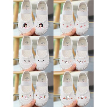 幼兒園小白鞋女童入園室內外鞋子帆布鞋兒童一腳蹬布鞋夏軟底童鞋