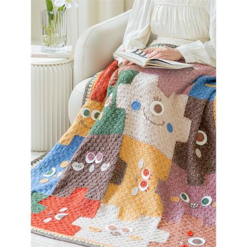 趣織社小怪獸拼圖毯子手工編織自制diy鉤針材料包毛線團