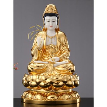 景德鎮陶瓷坐蓮觀音菩薩佛像雕塑陶瓷粉彩風水擺件保平安