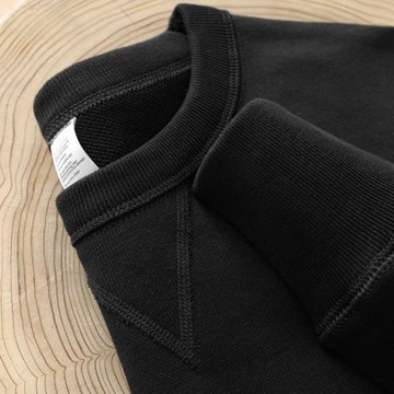 美式復古基礎款 340g重磅毛圈布黑色圓領衛衣女純黑寬松上衣男秋