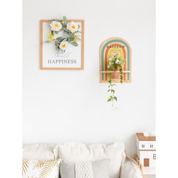 阿楹 ins彩虹書桌沙發背景墻面裝飾遮擋仿真花藝植物盆栽墻上掛件