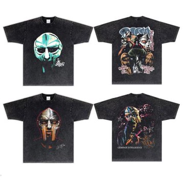 MF DOOM鐵面孔美式嘻哈西海岸重磅純棉小領口短袖t恤寬松潮流上衣