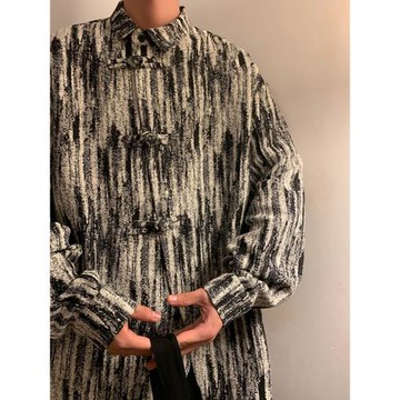 原生棉質 褶皺肌理感盤扣設計長袖襯衫 SH220510